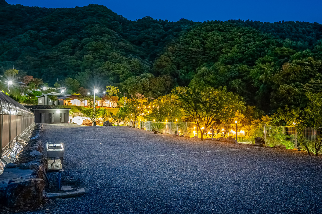 가평랜드는 대금산 고지에 있어서 그런지, 도심과는 비교할 수 없을 정도로 공기가 맑고 상쾌했어요. 평균 기온도 도심보다 5~10도 정도 낮아서 한여름에도 비교적 시원하게 캠핑을 즐길 수 있을 것 같아요. 저희가 갔을 때는 날씨가 정말 좋아서 밤하늘에 셀 수 없이 많은 별들이 쏟아지는 장관을 볼 수 있었답니다! 게다가 졸졸 흐르는 계곡 물소리까지 들리니, 이보다 더 완벽한 힐링이 있을까요? 가평 현리에서도 15분 거리라 접근성도 나쁘지 않았어요.