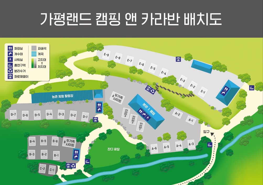 캠핑은 하고 싶지만, 지저분한 시설 때문에 망설여졌던 분들이라면 가평랜드의 청결함에 반하실 거예요. 정말 걱정 없이 편안하게 캠핑을 즐길 수 있답니다.