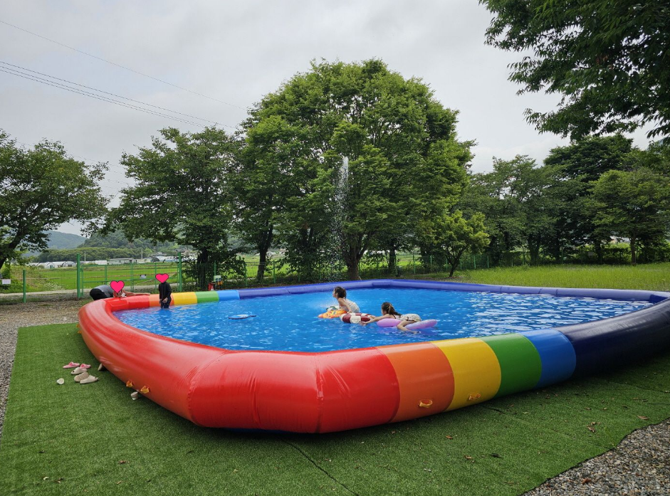 가족 단위 캠퍼들에게 희소식! 캠핑장 내에는 아이들이 마음껏 뛰어놀 수 있는 놀이시설과 여름철에는 시원하게 물놀이를 즐길 수 있는 수영장도 운영한다고 해요. (저희가 갔을 때는 아직 수영장 개장 전이었지만요!) 냇가에서도 놀 수 있고, 캠핑장 내에서도 즐길 거리가 있으니 아이들이 지루할 틈이 없겠어요.