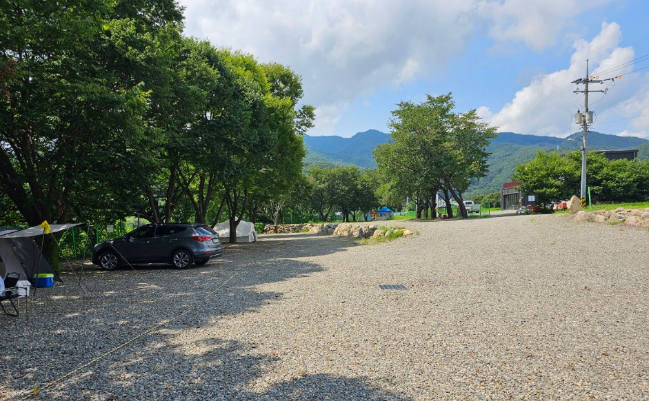 "나무그늘과 냇가가 있고 공간이 넓은 캠장" 이라는 한 줄 소개가 정말 딱 들어맞는 곳이었어요. 캠지기님의 따뜻한 환영 메시지처럼, 도착하자마자 깨끗하고 편안한 분위기에 마음이 놓였답니다. 실제로 캠핑장 전체적으로 나무가 많아서 자연 그늘이 풍부했고, 바로 옆으로 흐르는 냇가는 보기만 해도 시원했어요! 아이들이 있다면 물놀이하기에도 정말 좋겠죠? 저희는 발만 담그고 놀았는데도 더위가 싹 가시는 기분이었어요.