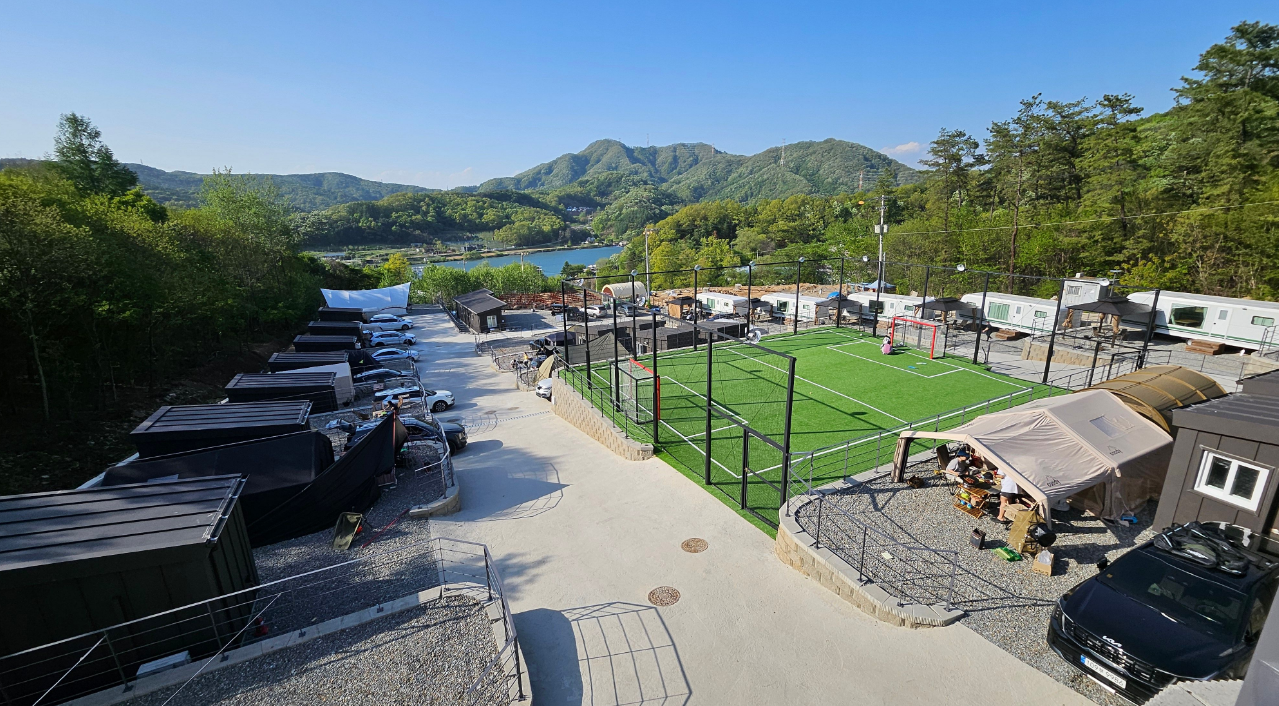 게다가 넓은 잔디 운동장(풋살장)이 있어서 공놀이 좋아하는 아이들에게는 최고의 놀이터가 됩니다. 저희 아이도 여기서 처음 만난 친구들이랑 시간 가는 줄 모르고 축구를 하더라고요. 배드민턴, 족구 등 어른들도 함께 즐길 수 있는 공간이라 가족 모두가 즐거웠어요.