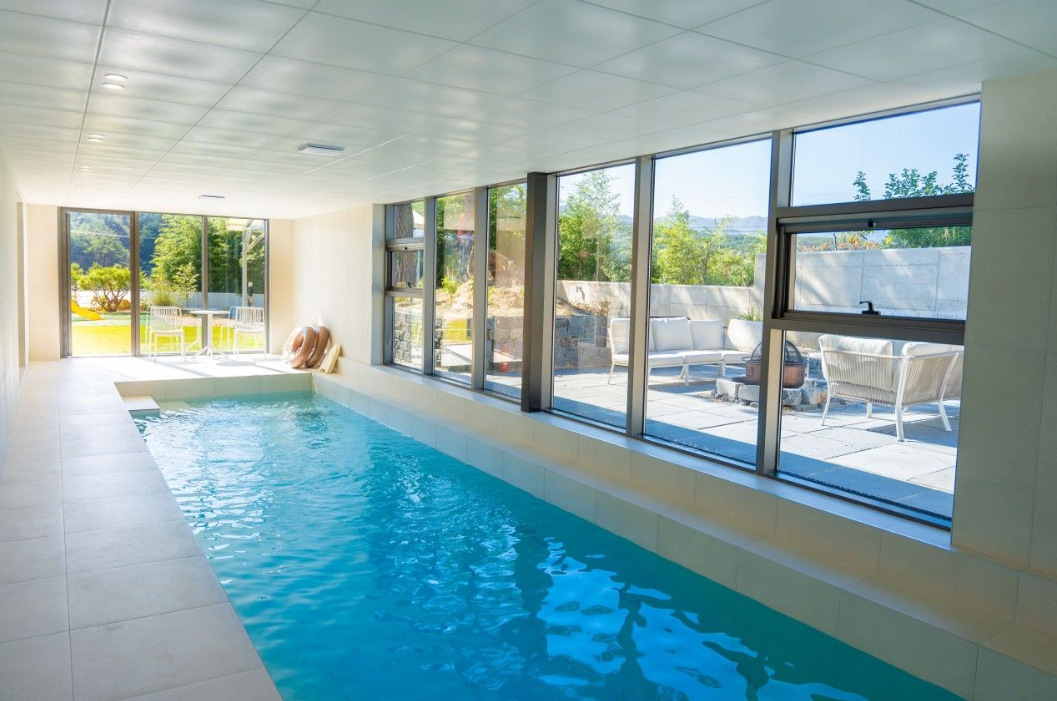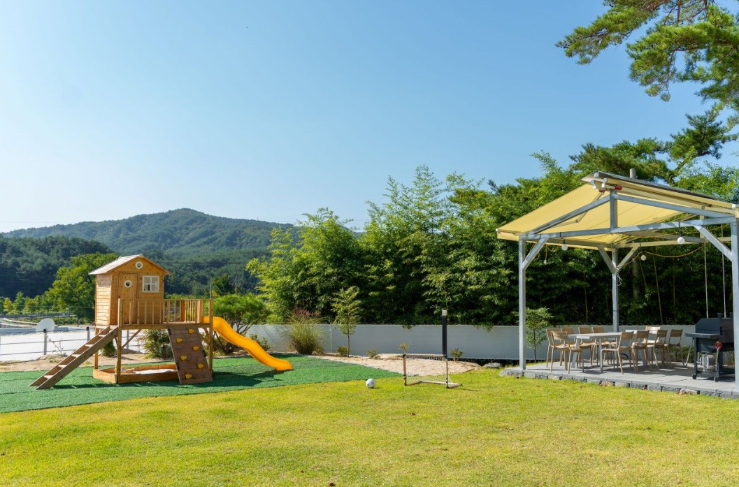 수영장은 가로 2.5m, 길이 10m로 꽤나 긴 편이라 간단한 수영을 즐기기에도 충분합니다. 수심은 85cm로 어른과 아이 모두에게 안전한 깊이예요. 너무 얕지도, 깊지도 않아서 아이들은 튜브를 타고 놀기에 안성맞춤이고, 어른들은 물에 몸을 담그고 편안하게 휴식을 취할 수 있습니다. 수온 역시 28도에서 32도 사이의 미온수로 항상 유지되어서, 쌀쌀한 봄, 가을은 물론 한겨울에도 따뜻한 물놀이가 가능해요. 상상만 해도 행복하네요!