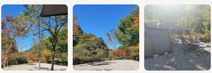 - 숲·산: 캠핑장 전체가 숲과 산으로 둘러싸여 있어서 피톤치드 가득한 맑은 공기를 마음껏 마실 수 있었어요. 아침에 새소리를 들으며 일어나는 기분, 정말 최고였답니다.