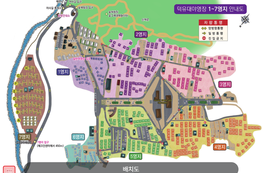- 영지 정보: 자동차 영지는 B~H구역은 마사토(4m x 6m), A구역은 블록 포장(6m x 7m)으로 되어 있어요. 텐트 사이즈를 고려하여 영지를 선택하세요.