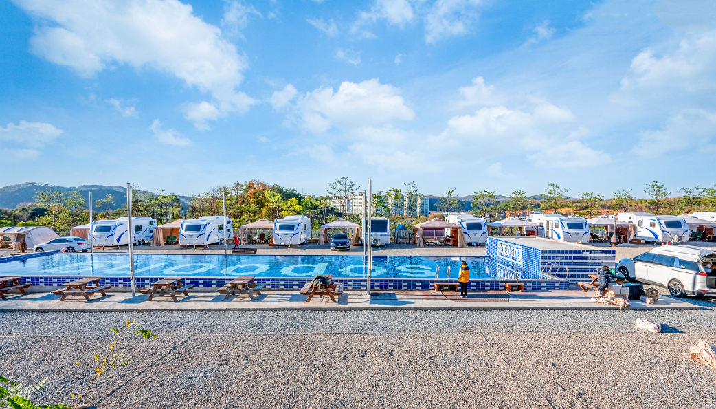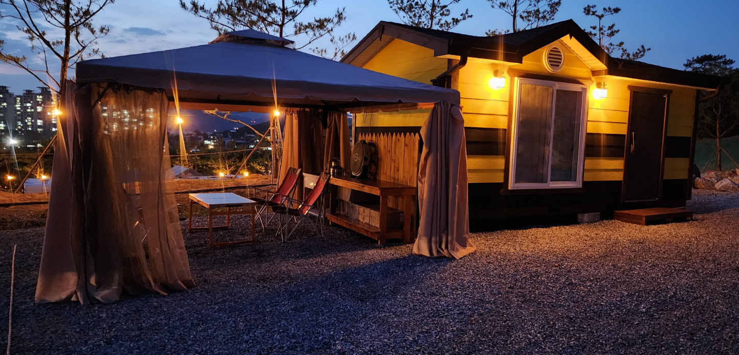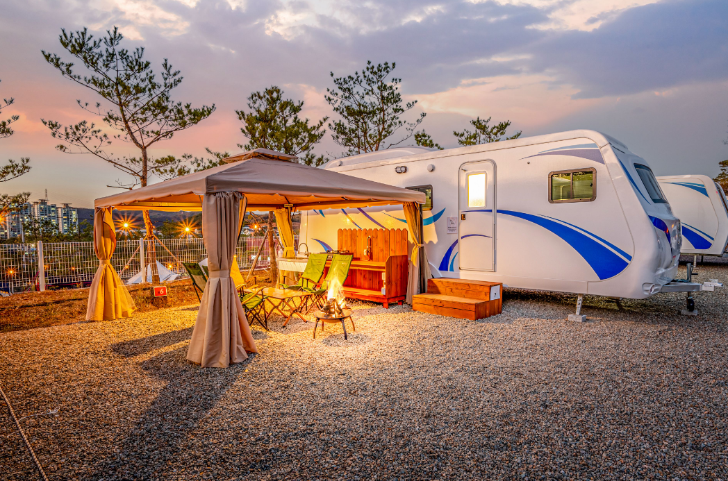 저희는 오토캠핑을 즐겼지만, 둘러보니 장비가 없는 분들도 편하게 올 수 있도록 글램핑 텐트 대여존, 다양한 크기와 가격대의 카라반, 그리고 방갈로까지 준비되어 있더라고요. 글램핑은 1박에 100,000원, 카라반은 160,000원부터 시작해서 시설 좋은 곳은 190,000원까지 다양했어요. 친구들이나 부모님 모시고 오기에도 정말 좋겠다는 생각이 들었습니다. 각자 스타일에 맞게 캠핑을 즐길 수 있다는 점이 큰 매력 포인트 같아요.
