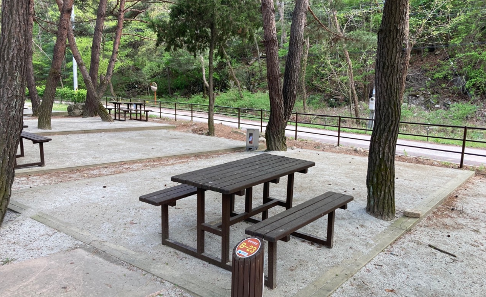 - 테이블: 각 사이트마다 피크닉 테이블이 설치되어 있어서 따로 테이블을 챙겨가지 않아도 편리했어요! 완전 꿀템!