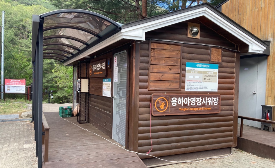 캠핑 가서 땀 흘리고 난 뒤, 혹은 물놀이 후에 개운하게 샤워할 수 있다면 정말 좋겠죠? 용하 야영장에는 샤워장 1동 이 마련되어 있어요.