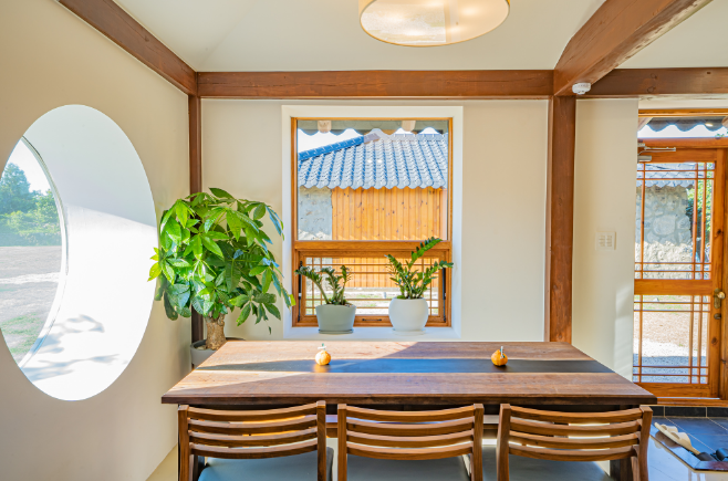 이곳은 크게 두 채의 건물로 이루어져 있어요. 제주 전통 가옥의 멋을 그대로 살린 <구옥안채>와 별도의 주방 공간이 마련된 <구옥별채>가 바로 그 주인공입니다.
