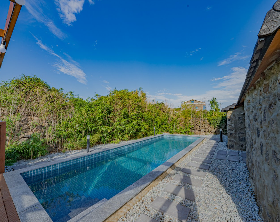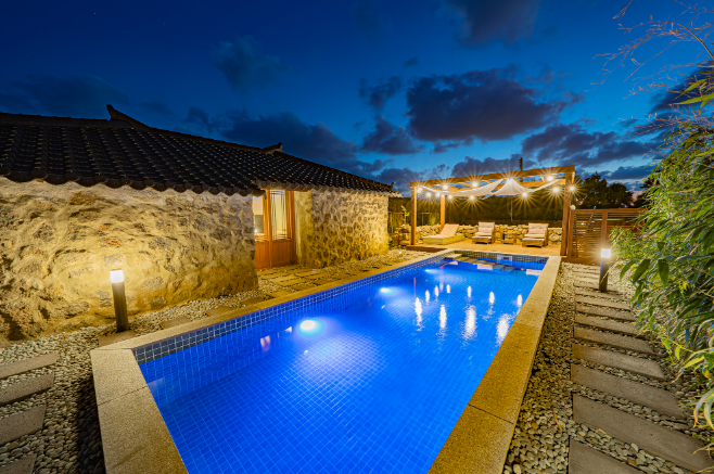 따스한 온수풀에 몸을 담그고, 푸른 잔디 마당에서 캠핑의 낭만을 즐기는 상상! 이번 휴가는 제주 애월의 아름다운 골목길, '고샅길'에서 잊지 못할 추억을 만들어 보시는 건 어떨까요?