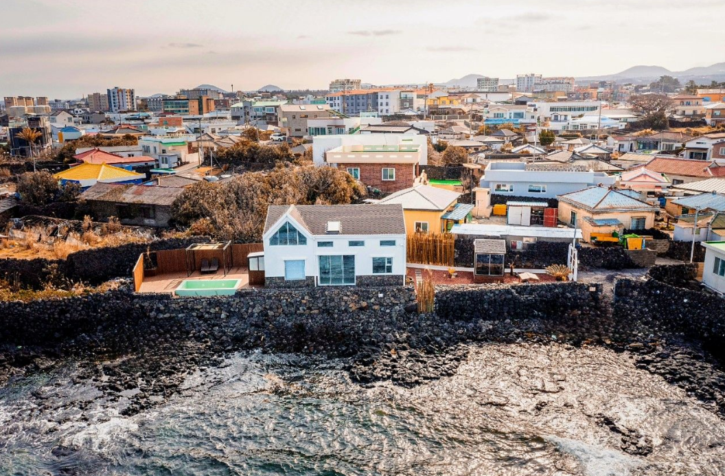 여행에서 시간은 금이잖아요? 이곳은 제주국제공항에서 동쪽으로 약 18km, 차로 30분이면 도착하는 아주 좋은 위치에 자리 잡고 있습니다. 너무 멀지도, 시끄럽지도 않은 조용한 바닷가 마을 신촌리에 있어서 제주에 도착하자마자 편안하게 여정을 시작할 수 있었어요. 동쪽으로는 함덕 해수욕장, 서쪽으로는 삼양 검은모래해수욕장이 모두 10분 거리에 있어 어디로든 여행하기 편리한 점이 정말 큰 장점입니다.