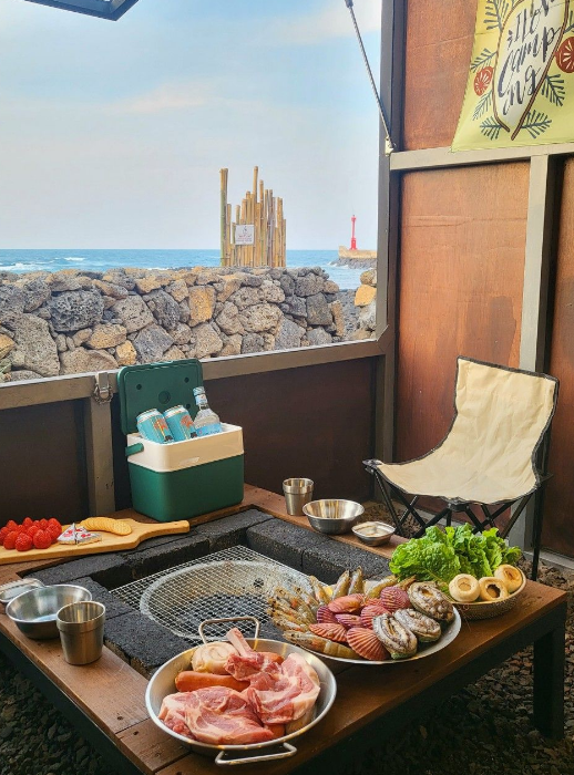 여행의 꽃은 역시 바베큐 아니겠어요? 스테이 스트레스리스는 평범한 바베큐장을 넘어, 아늑한 방갈로 스타일의 개별 바베큐존을 제공합니다. 덕분에 날씨에 구애받지 않고 프라이빗하게 우리만의 파티를 즐길 수 있었어요. 감성적인 조명 아래에서 지글지글 구워 먹는 흑돼지 맛은 정말 최고였답니다. 마치 글램핑을 온 듯한 기분까지 느낄 수 있었어요!