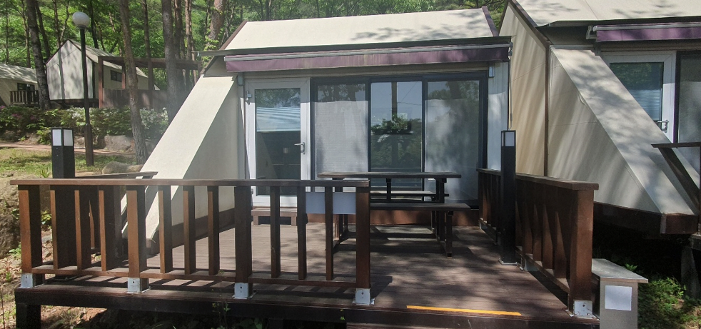 - 하우스 (A, B 구역): 텐트가 없어도 괜찮아요! A구역(20개소)은 막구조 형태, B구역(6개소)은 목구조 형태의 아늑한 하우스가 준비되어 있습니다. 캠핑 장비 없이도 편안하게 자연을 즐기고 싶은 분들께 추천해요.