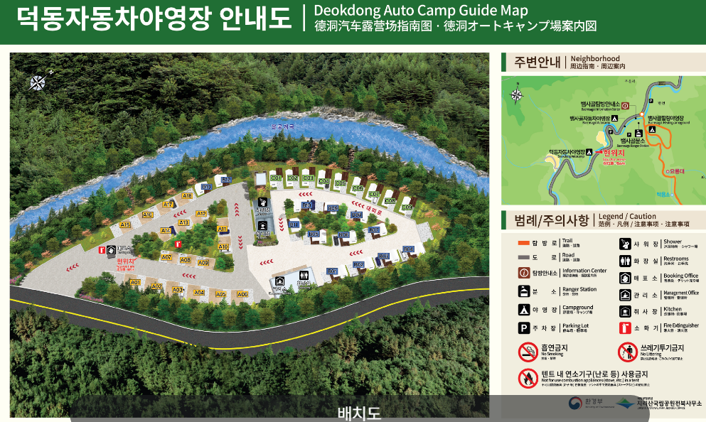 덕동 야영장은 환경을 생각하는 착한 캠핑장이랍니다! 일부 영지를 「무공해 영지」 로 지정해서 운영하고 있어요. * 이용 대상: 무공해차(전기·수소차), 대중교통·자전거·도보 이용객 * 해당 영지: A15~A18번, B12번 * 환경도 보호하고, 조용한 캠핑을 즐기고 싶은 분들께는 정말 좋은 선택이 될 거예요. 예약하실 때 본인이 해당되는지 꼭 확인하고 예약해주세요! 운영정책 위반 시 책임은 예약자에게 있으니 주의해야 한답니다.
