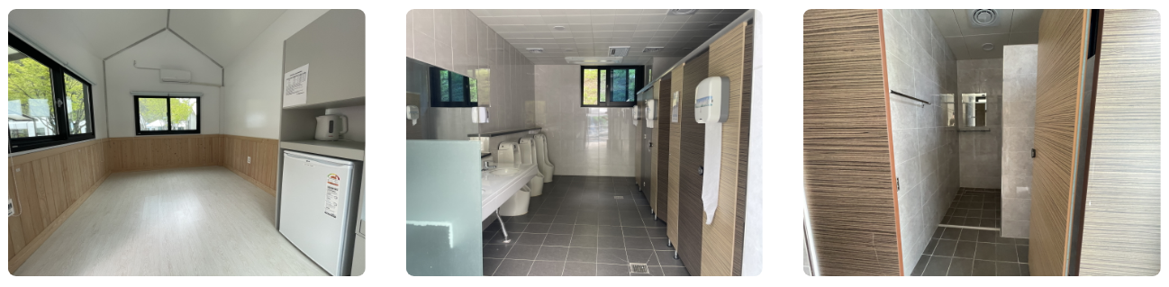 - 비치 물품: 피크닉 테이블, 냉장고, 전자레인지, 커피포트, 냉난방기, 구급약품 등