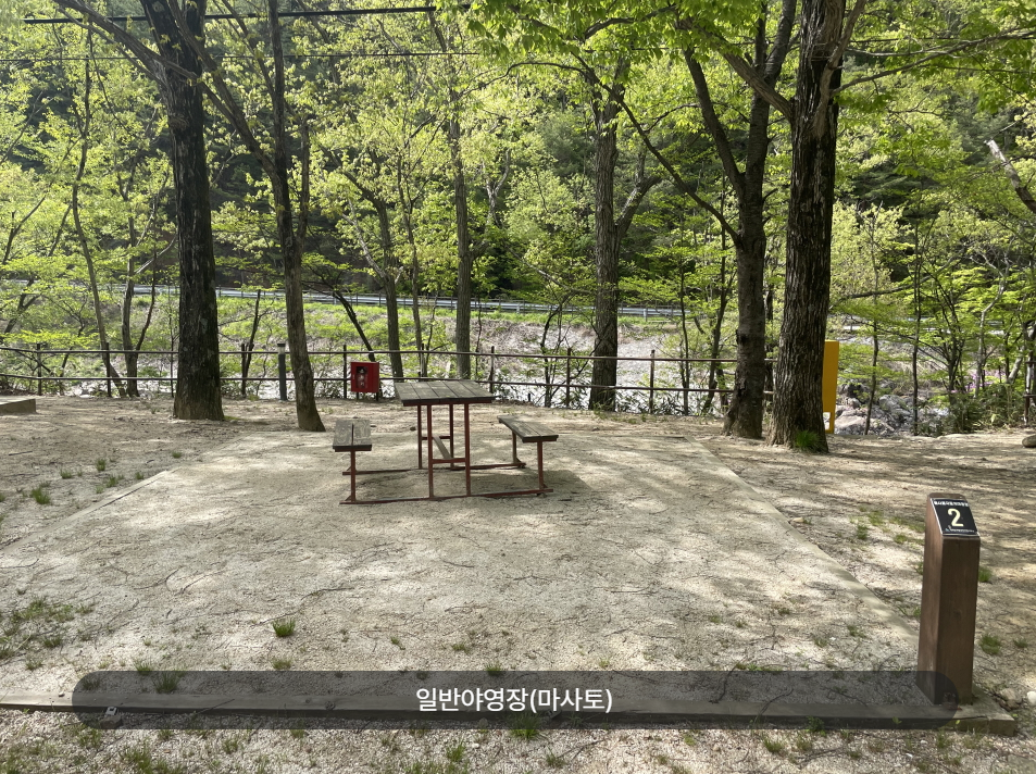 - 바닥 재질: 마사토 (배수가 용이하고 텐트 치기 좋아요!)