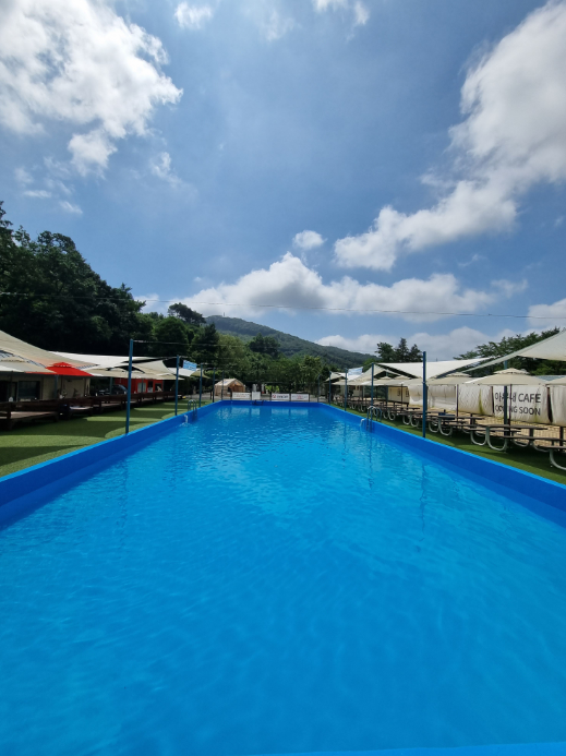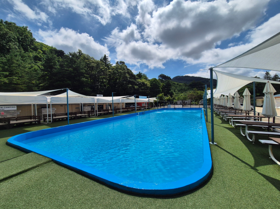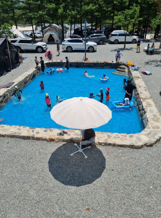 여름 시즌에는 시원한 물놀이장 이 개장해요! 실제 후기를 봐도 아이들이 오픈 시간부터 마감 시간까지 꽉 채워 놀았다는 칭찬이 자자했어요. 꼭 숙박을 하지 않더라도 물놀이를 즐길 수 있는 당일 피크닉존(평상) 도 운영합니다. 40,000원으로 하루 종일 깨끗한 시설에서 물놀이를 즐길 수 있으니, 근처에 사시는 분들은 부담 없이 다녀오기 정말 좋겠어요.