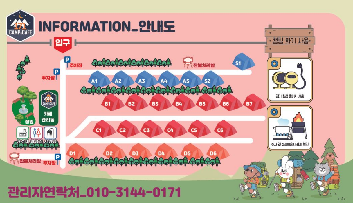 자, 그럼 이제 본격적으로 171관광농원의 시설들을 살펴볼까요? 오토캠핑을 즐기기에 부족함이 없는 곳이랍니다.