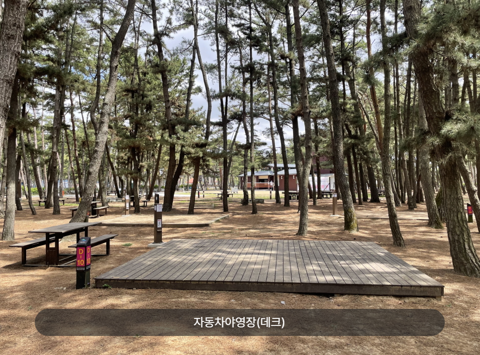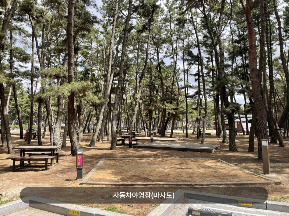 생각보다 더 편리한 시설들이 준비되어 있어서 놀랐어요! * 테이블 : 사이트마다 피크닉 테이블이 있는 곳도 있어서 정말 편해요! (배치도 확인 필요) * 공용 냉장고 : 이게 정말 대박인데요, 공용 냉장고가 있어서 신선하게 식재료를 보관할 수 있답니다! * WIFI : 아쉽게도 와이파이 서비스는 제공되지 않아요. 디지털 디톡스를 즐겨보는 것도 좋겠죠? * 전기차 충전소 : 야영장 내에는 없지만, 도보 5분 거리에 있는 몽산포 주차장에서 2대 이용 가능 하다고 하니 전기차 이용자분들은 참고하세요!