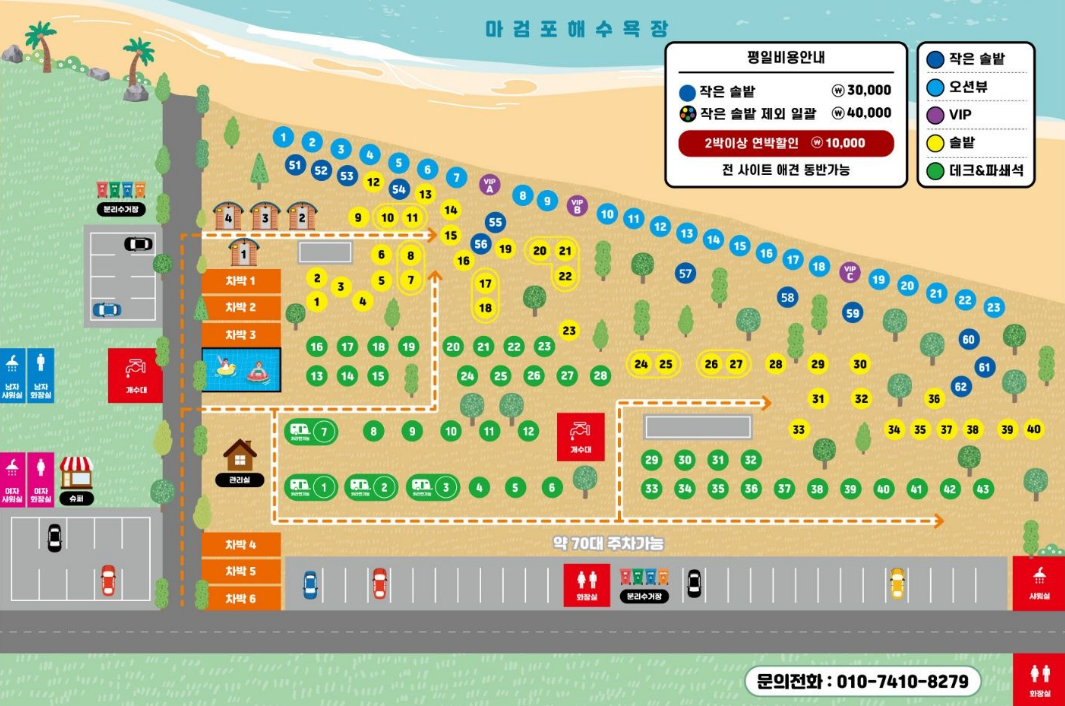 - 오토캠핑 VIP ZONE (오션VIP): 50,000원 / 1박 (6m x 9m)