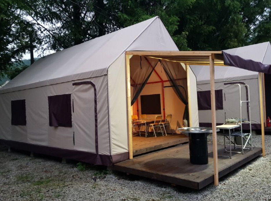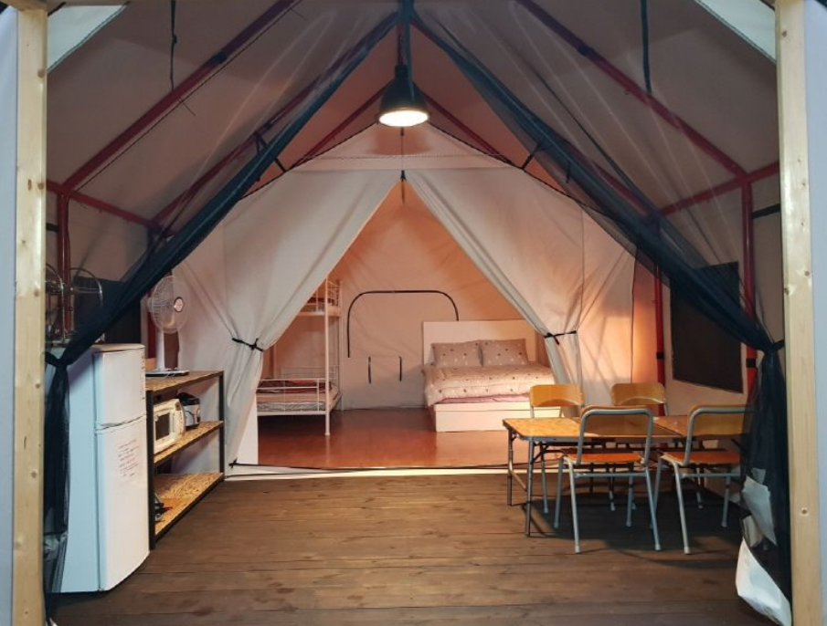 여기서 잠깐, 꿀팁 하나! 글램핑 텐트마다 내부 구조가 조금씩 다른데, 어떤 곳은 신형 철제 2층 침대가 있고 어떤 곳은 나무로 된 침대가 있다고 해요. 아이들이 2층 침대를 정말 좋아하잖아요? 조금 더 좋은 시설을 원하신다면 무조건 입실 시간에 맞춰 일찍 도착해서 자리를 선점하는 걸 추천합니다! 저희는 운 좋게 일찍 도착해서 튼튼한 철제 침대가 있는 곳으로 배정받을 수 있었어요.